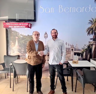 En la siguiente foto de archivo podemos ver a Ángeles durante la presentación de su libro "La Constelación sobre el Guadalquivir" que tuvo lugar en junio de 2019 en nuestra Peña.